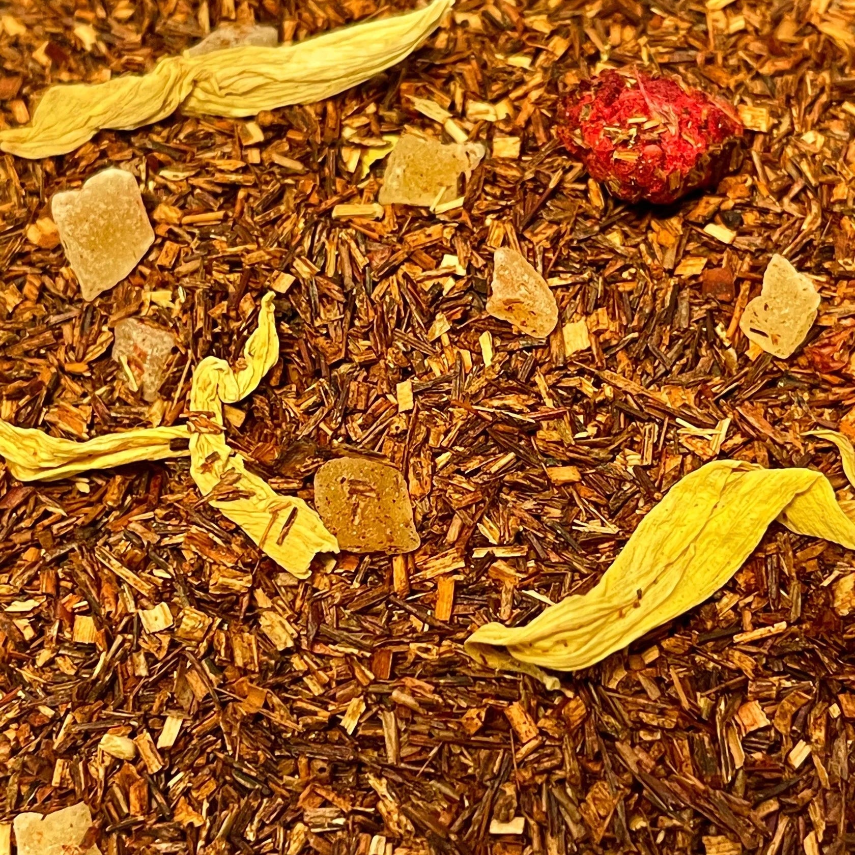 Fruity rooibos blend with papaya, mango, and pineapple pieces! Plus blackcurrants and sunflower blossoms!