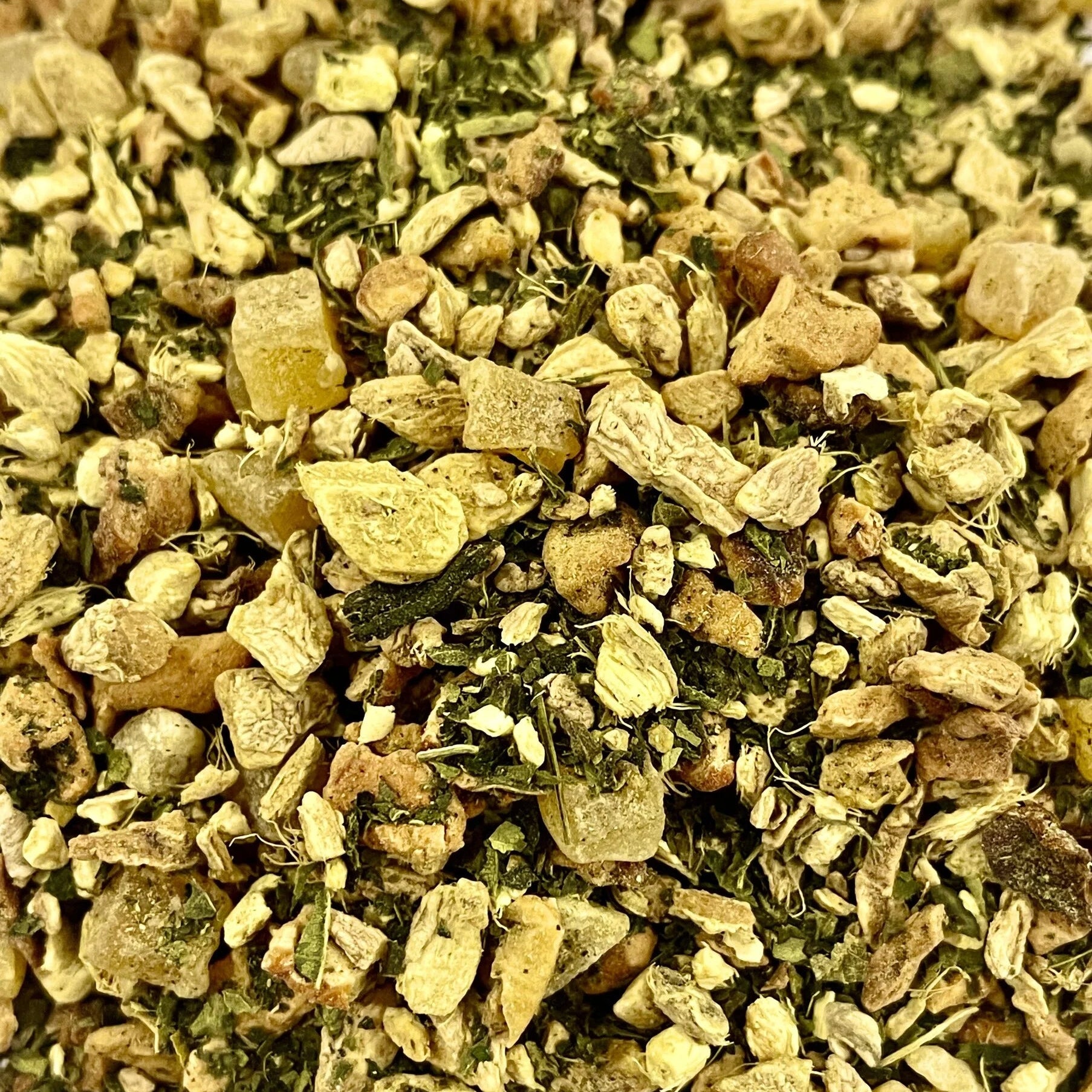 A fruity herbal blend of ginger, apple, mango, and nettle leaves. The apple and mango sweeten this tea blend and perfectly balance the spiciness of the ginger.