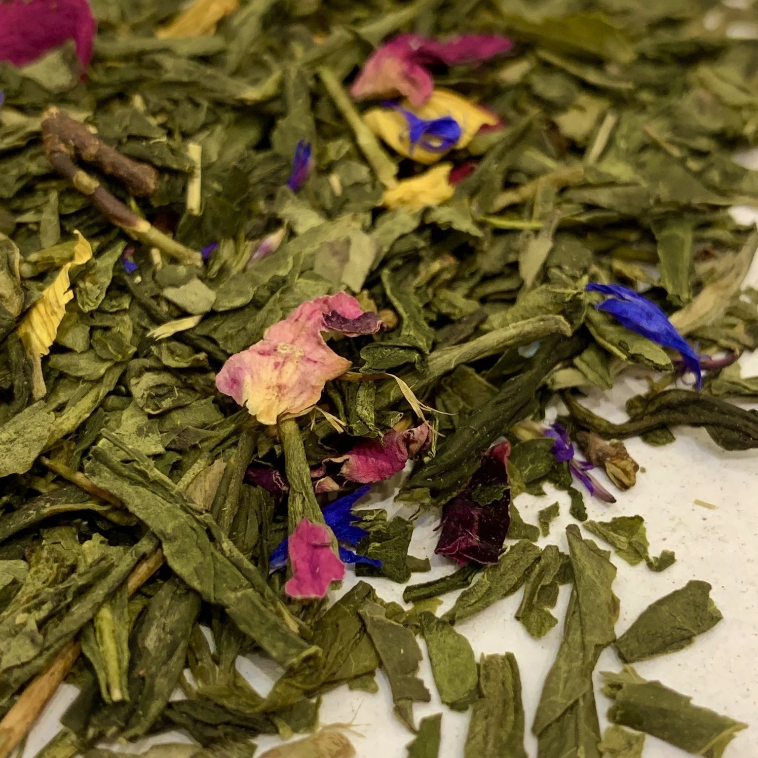 Té Sencha suave refinado con mango, bergamota, aciano y pétalos de rosa.